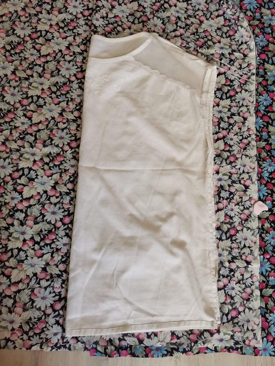 Безмерно горда собой! Сшить и найти в себе силы перешить - это нужно иметь харрррррактер 💪🏻 После пошива удачного домашнего костюма из ситца решилась на следующий эксперимент. Он провалился, но история о том, как из 💩 сделать 🍬. Статьи про ситцевый костюм вас ждут в конце 🌼 Т.к. ситцевый наряд кроила без выкройки, решила эту традицию поддержать. Ткань выбрала старую советскую, ту, которую не жалко. Эти мелкие цветочки на черном выглядят весьма мрачно, и, по хорошему, у лица такую расцветку лучше бы не носить. Сейчас я думаю, что ее вообще никак лучше не носить, а пустить бы на лоскутное... 🙄 но что сделано, то сделано. Взяла свою свободную футболку из нетянущейся ткани (без застежек), которую я храню исключительно ради выкроек. Приложила, обвела. Зная о том, что футболка довольно длинная, приблизительно наметила линию талии. Юбка - обычная "татьянка" с воланчиком. Собрала платье. Примерила. Добавила кулиску на талию, в нее забрала лишнюю ткань. Полочка с "фальшь" пуговицами. Для