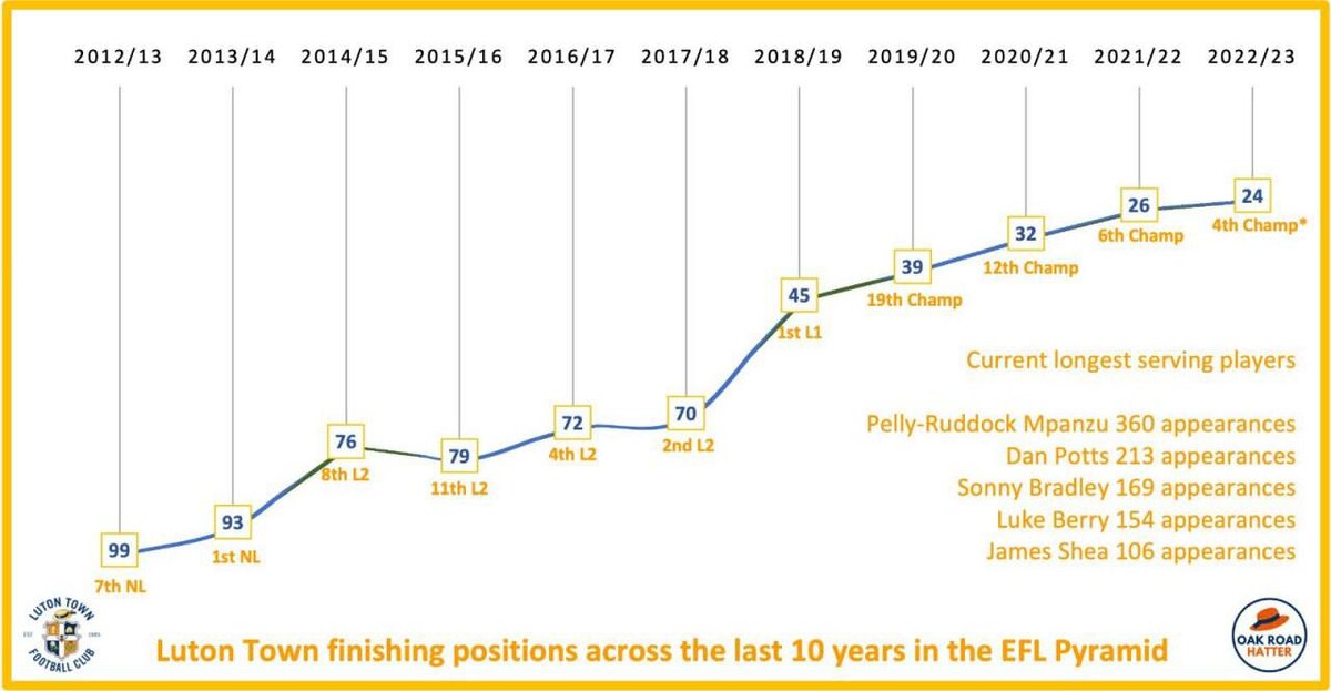 Но от того прогресс выглядит еще более впечатляющим, «шляпники» не зависят ни от кого и устойчиво выдерживают любые удары судьбы. Ушел Натан Джонс? Ничего страшного, Роб Эдвардс еще круче, он выведет команду на новый уровень. Ушел многолетний лидер Джеймс Бри? Нет проблем, его без потери качества заменит молодой Коди Драме. И у коллектива из Бедфордшира так везде и во всем.
