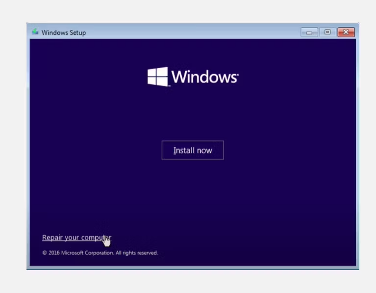 Это приведет к загрузке процесса восстановления/установки Windows.