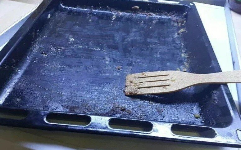 Удалила застарелый жир и нагар на противне, даже особо тереть не пришлось. Приготовила простой раствор, и жир легко отошел, делюсь способом