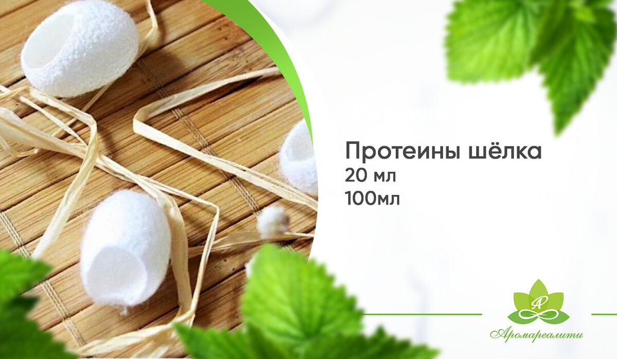 Протеины шелка – это активный компонент для косметики. Добавляются в средства для ухода за волосами, кожей и ногтями. Имеют полностью натуральное происхождение и обладают высокой биологической активностью. Один из компонентов, который практически никогда не вызывает аллергии. Протеины шелка проникают в волосяную луковицу, доставляя волосам необходимые питательные элементы и влагу, которая удерживается благодаря образованию пептидной пленки. Способствуют регенерации поврежденных волос. Защитная пленка придает волосам блеск и эластичность, а также защищает волосы от неблагоприятных воздействий окружающей среды. Вместе с этим волосы становятся мягкими и гладкими. Жидкий шелк облегчает расчесывание и укладку, действует как антистатик. При использовании в косметике для кожи протеины шелка легко впитываются, обладают прекрасными увлажняющими свойствами, улучшают метаболизм дермы и эпидермиса. Оказывают регуляторное действие на уровень меланина в коже. Активизируют регенерацию кожных покрово