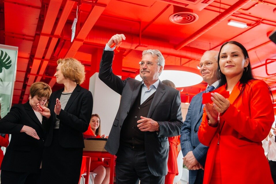На церемонию открытия приехал председатель совета директоров Альфа-Банка Олег Сысуев. Он отметил, что главное отличие нового филиала — сочетание современных цифровых технологий и прекрасно подготовленных сотрудников, а между сотрудниками и клиентами «стерты» барьеры: