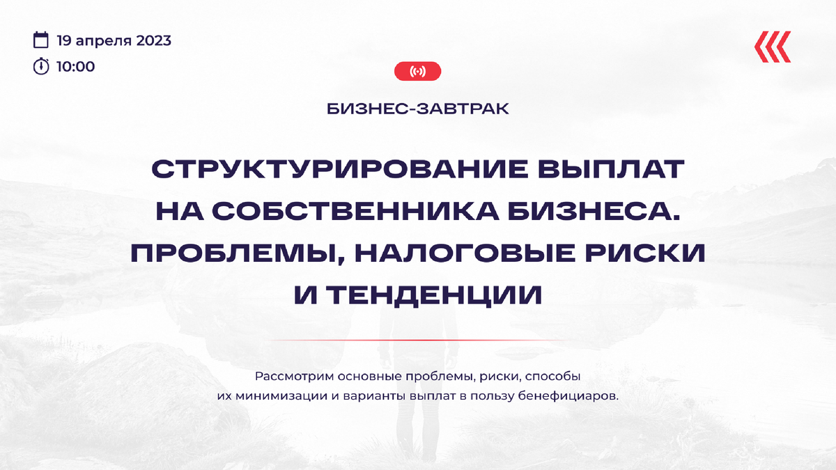 Бизнес-завтрак «СТРУКТУРИРОВАНИЕ ВЫПЛАТ НА СОБСТВЕННИКА БИЗНЕСА. ПРОБЛЕМЫ, НАЛОГОВЫЕ РИСКИ И ТЕНДЕНЦИИ» На практике возникают сложности с выплатами в пользу бенефициаров в случаях опосредованного владения компанией (например, через доверенных лиц). Часто применяются способы выплат с высокими налоговыми рисками (например, оказание услуг для своей компании). В связи с чем необходимо рассмотреть основные проблемы, риски, способы их минимизации и варианты выплат в пользу бенефициаров. 📑 Программа бизнес-завтрака: 🎙️ Спикер мероприятия: Джавид Эйюбов, юрист практики структурирования бизнеса 🗓️ 19 апреля ⏳ 10:00 - 11:00 📍 Земляной Вал, д. 68/18, стр. 3 📲 Ссылка на регистрацию — https://kskgroup.ru/events/strukturirovanie-vyplat-na-sobstvennika-biznesa-problemy-nalogovye-riski-i-tendentsii/