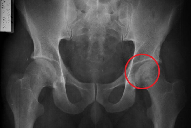 Ортопед был первым врачом кто, более-менее серьезно отнеся к ситуации. Выслушал меня, провел осмотр, в ходе которого выявил что левая нога стала короче правой на 2-3мм, так же он замерил радиус вращения тазобедренного сустава, угол сгибания коленного сустава. После этих манипуляций у меня появилось доверие к нему. Это было первый раз, когда был озвучен диагноз коксартроз. Но для его подтверждения он меня направил на рентген. По коленному суставу у ортопеда было предположение что это отдается боль от тазобедренного сустава. Но у нас в поликлинике толи была очередь на него, то ли он был сломан. И тогда я не нашел ничего лучше, кроме как поехать к тете в хирургию в соседний город, 35 км от Самары делать рентген, поскольку мне уже не хотелось терять ни минуты на обследования, хотелось начать нормальное лечение, ведь я попал к хорошему врачу. Тетя у меня санитарка в хирургическом отделении районной больницы, человек добрейший и рассудительный, пока сидели с ней в коридоре и ждали рентгенолога по человечески поговорили с ней, сказала что таких как я пруд пруди, у нее у самой суставы тоже болят, сидит на уколах да на мази, это не страшно, жить можно, хотя сказала что такие проблемы у людей в предпенсионном возрасте и старше, а тут я – молодой, может у меня что то другое. Однако рентген, хоть и аппарат там древний, все-таки показал дегенеративные изменения в головке бедра: