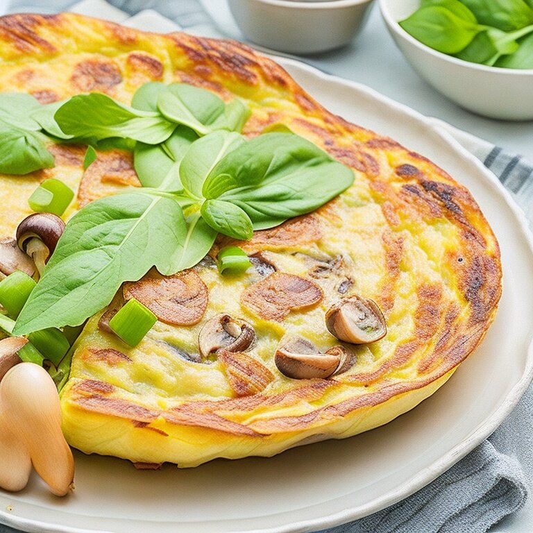 Готовьте омлет на среднем огне до тех пор, пока он не начнет приобретать золотистый цвет. Затем переверните его и готовьте еще 1-2 минуты до готовности. Омлет готов! Подавайте его горячим с свежими овощами или зеленью. Это отличный вариант для тех, кто хочет начать день с полезного и сытного завтрака, который также будет невероятно вкусным и легко приготовим.