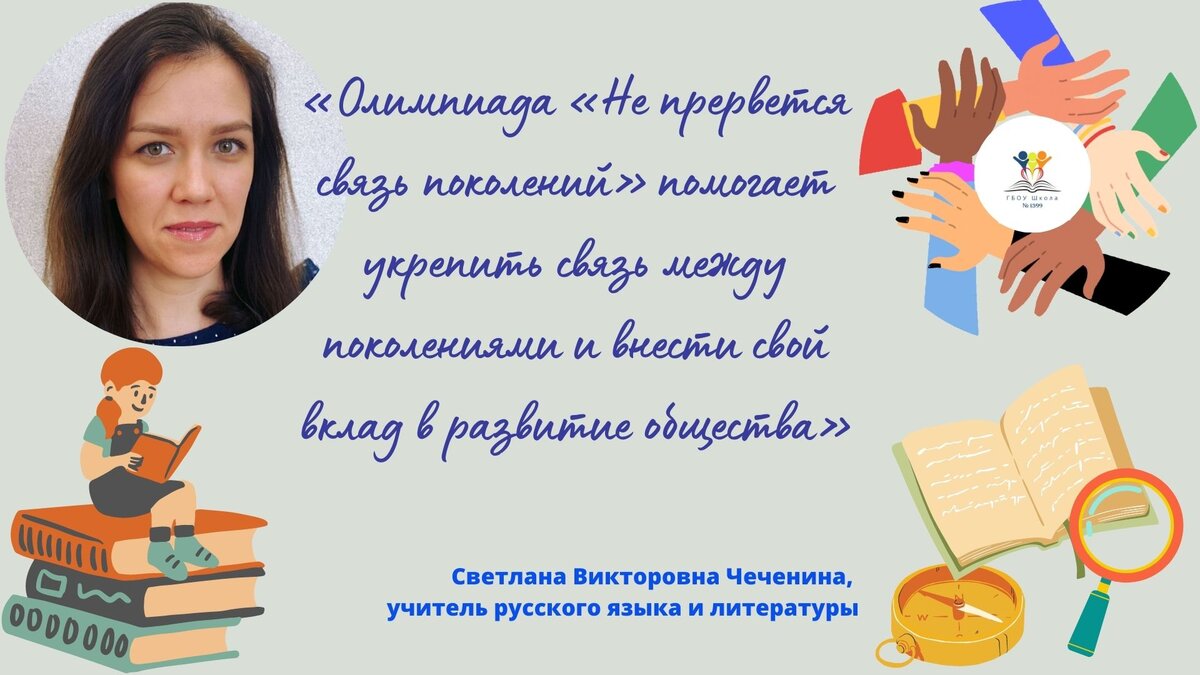 ✨Я считаю, что олимпиада «Не прервётся связь поколений» - это замечательная идея, для наших ребят это хороший способ расширить кругозор и узнать что-то новое о разных поколениях, их ценностях и традициях. Я поддерживаю идею организаторов и считаю, что олимпиада помогает укрепить связь между поколениями и внести свой вклад в развитие общ