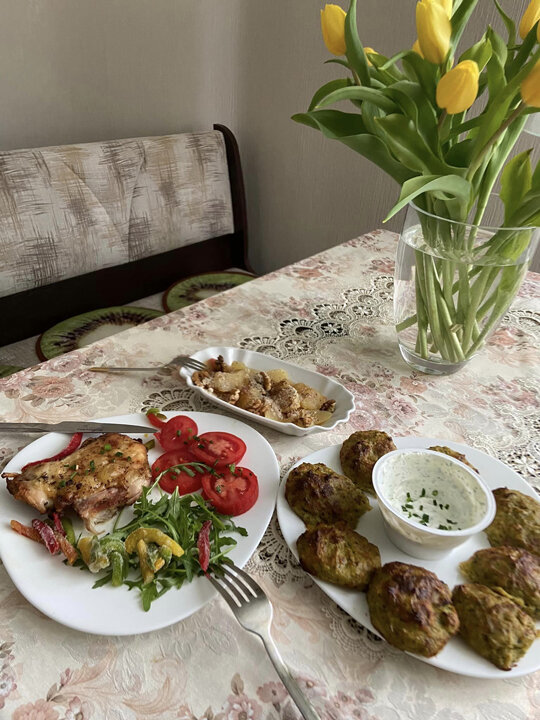 Котлеты из чечевицы и брокколи плюс запечённая курица на обед