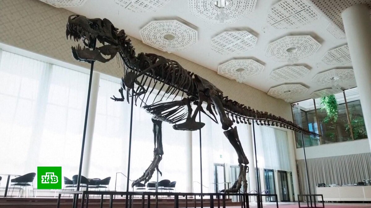 [ Смотреть видео на сайте НТВ ] В Швейцарии нашли хозяина для тираннозавра. Полный скелет знаменитого доисторического хищного ящера продали на аукционе за 5,3 млн долларов. Окончательная цена организаторов торгов не устроила: они намеревались выручить по меньшей мере в два раза больше. Возможно, потенциальных покупателей смутил тот факт, что облик динозавра собран из останков, найденных в трех разных регионах в США. Специалисты скомпоновали три сотни костей в единую конструкцию на стальном основании. Получился довольно внушительный скелет длиной почти 12 метров и высотой в 4 метра. Известно, что тираннозавра приобрел частный коллекционер из Европы. Свое имя он решил не раскрывать. [ Смотреть видео на сайте НТВ ]