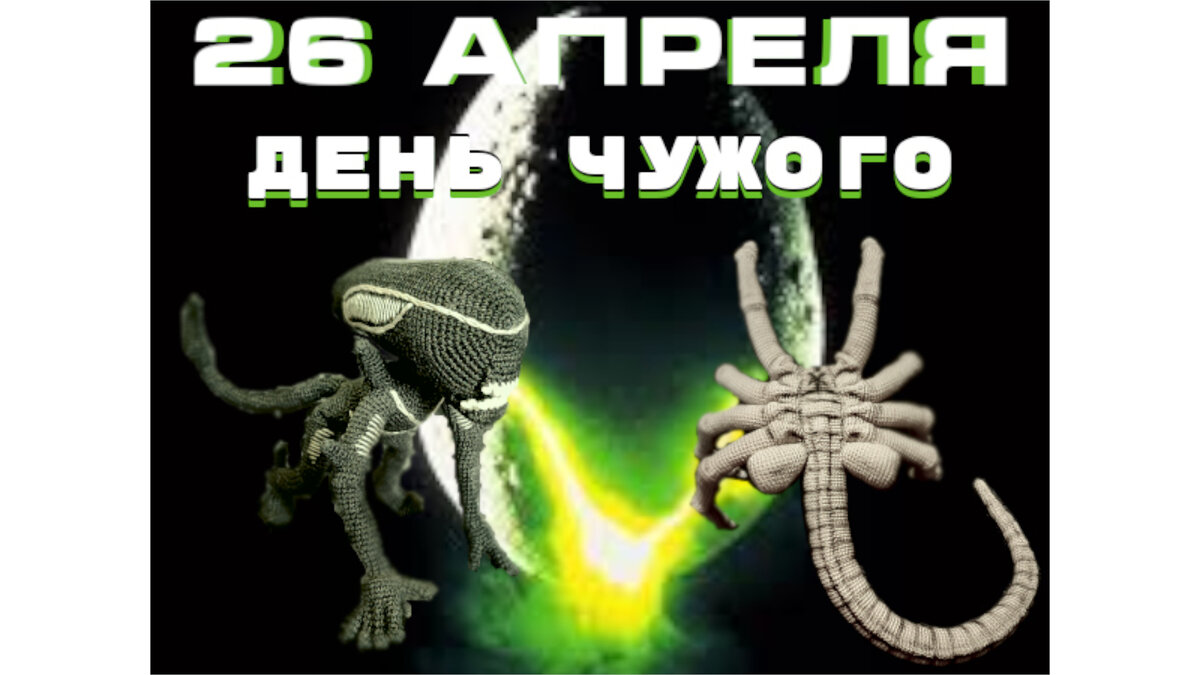 Компания 20th Century Fox объявила 26 апреля Днём Чужого (Alien’s Day). Дата нового фантастического праздника взята не с потолка — она соотносится с названием луны LV-426, которая фигурировала в фильме. К этому празднику у меня есть игрушки: 1. "Чужой" - название вымышленной внеземной расы из вселенной. В отличие от некоторых других внеземных рас, представленных в научной фантастике, Чужие не являются представителями высокоразвитой технологической цивилизации. Отличаются ярко выраженным агрессивным поведением и почти всегда стремятся убить любое живое существо, попавшее в поле зрения. Подобно общественным насекомым, Чужие являются эусоциальным видом с одной производящей потомство самкой. Жизненный цикл включает имплантацию эндопаразитоидных личинок внутрь ещё живых организмов хозяев. Закончив своё развитие, личинки вырываются из тел, служащих инкубаторами, затем быстро, в течение нескольких часов созревают до состояния взрослого организма, и начинают поиски новых хозяев для размножения