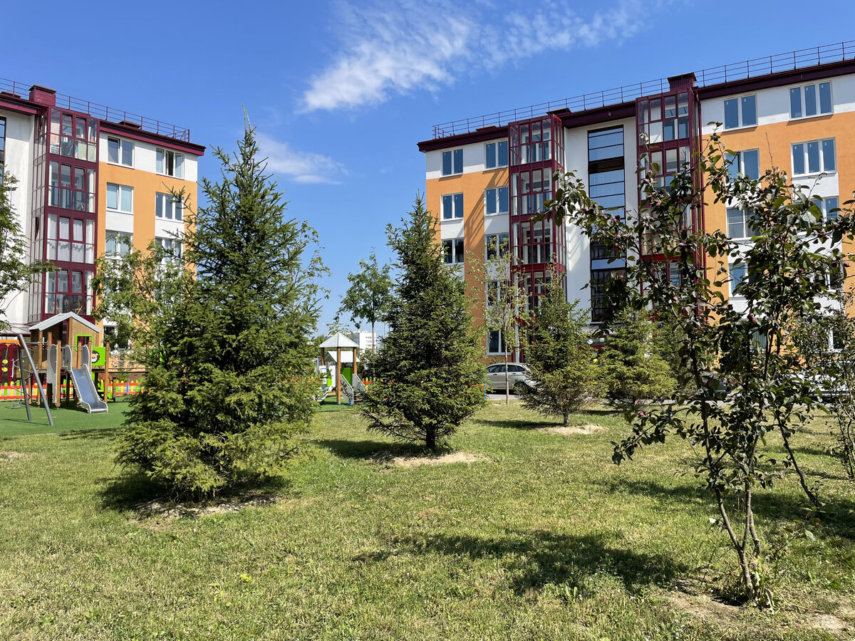 Низкая плотность застройки территории и строгий высотный регламент проекта «На Царскосельских холмах» подразумевают небольшую плотность населения. Значительные площади — как внутридворовые, так и межквартальные — отданы под зеленые насаждения. Кстати, деревья и кустарники вокруг домов высаживаются еще во время строительства, как только завершается прокладка коммуникаций. В итоге новоселов встречают уже подросшие и окрепшие растения, которые лишь создают ощущение жизни за городом.
