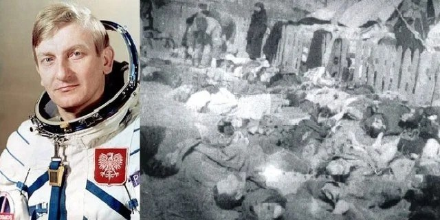 Одним из выживших был полуторагодовалый Мирослав Гермашевский. Причем мать, спасаясь, уронила ребенка в сугроб и потеряла его. Утром его нашел отец, который сначала подумал, что ребенок замерз. Бандеровцы в тот же день закололи деда Мирослава. А отец был убит украинскими националистами чуть позже, в августе 43-го. Затем Мирослав Гермашевский (1941, Липники, Украина- 12 декабря 2022, Варшава, Польша) стал первым и пока единственным польским космонавтом (фото).