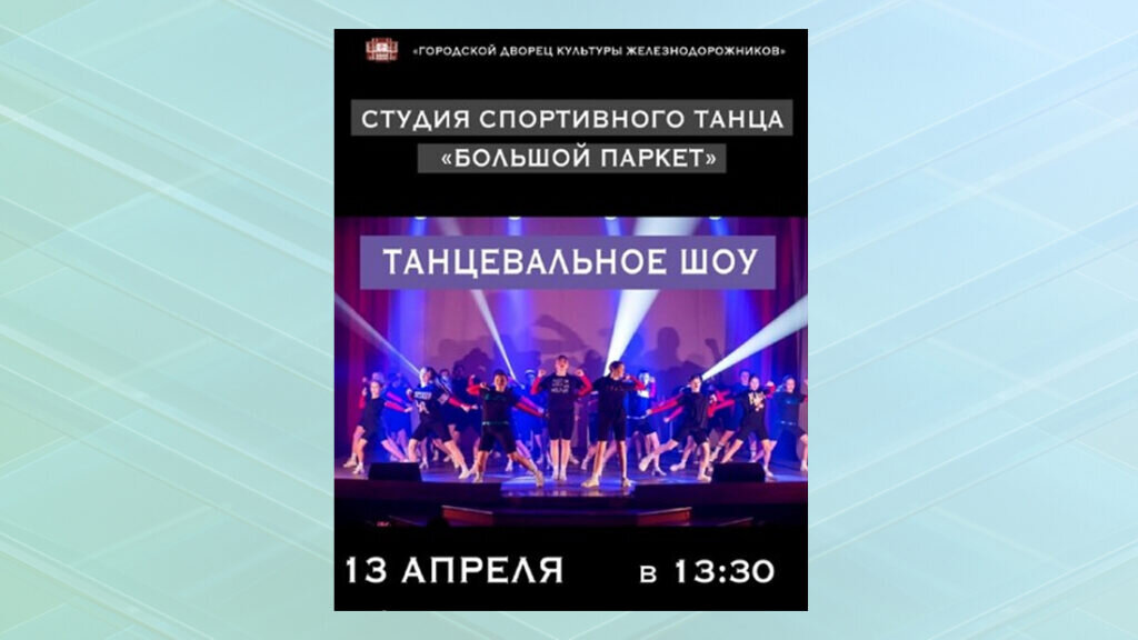 На базе МБУК «Городской Дворец железнодорожников» в Брянске пройдет танцевальное шоу «Большой паркет». Мероприятие состоится в четверг, 13 апреля. Начало в 13:30. Об этом сообщается в официальной группе учреждения в соцсети «ВКонтакте». Брянцам покажут захватывающее танцевальное шоу. Их познакомят с великолепным миром танца, погрузят в актуальные тренды хореографического искусства, современную музыку и успешные световые решения и графики. Следует отметить, что студия спортивного танца активно пропагандирует здоровый образ жизни, привлекает внимание молодежи к занятиям спортом и творчеством. 0+ ФОТО: ГДК Железнодорожников Брянцев приглашают на танцевальное шоу «Большой паркет»