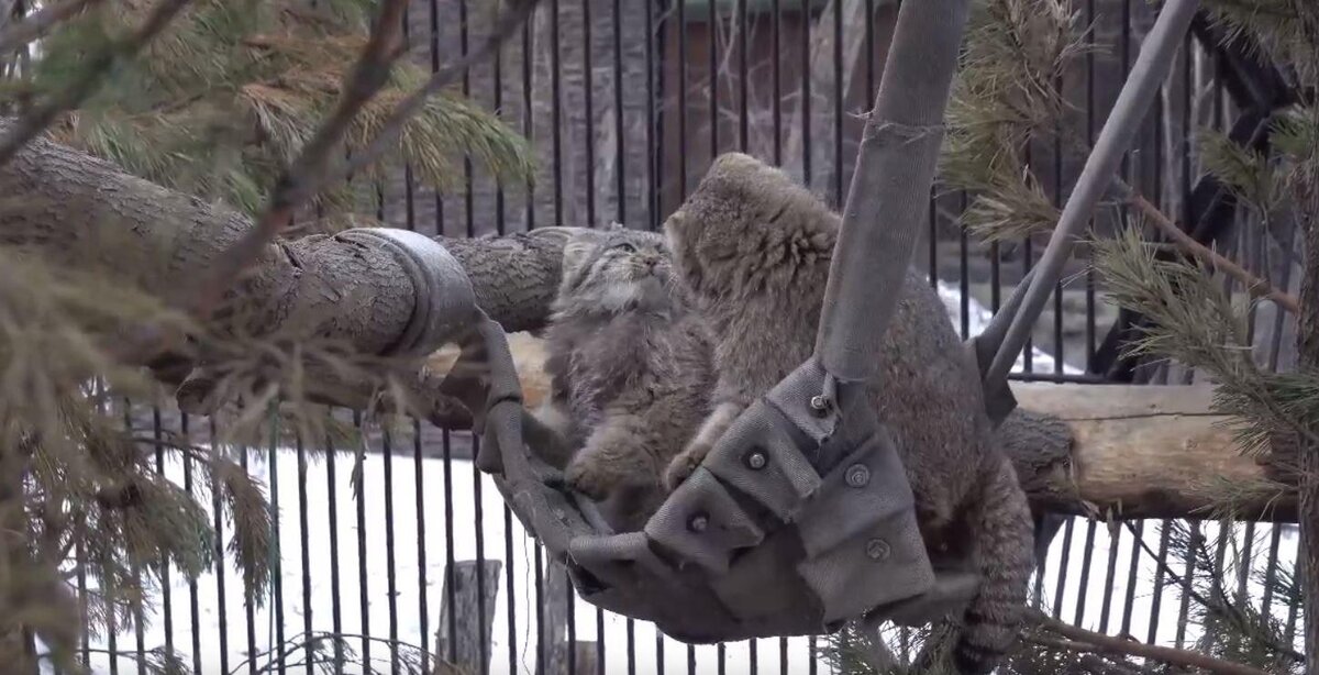Манулы в Новосибирском зоопарке подрались за место в гамаке