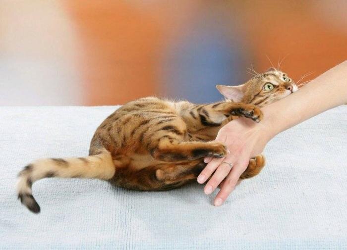Не позволяйте котёнку отрабатывать навыки охоты на ваших руках и ногах