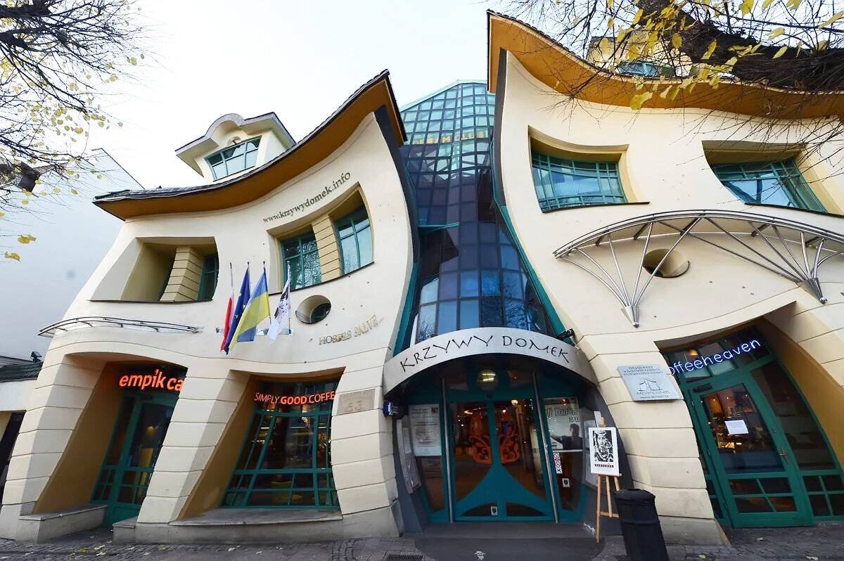 Перевёрнутый дом, созданный польским архитектором Даниэлем Шапиевски, одно время был самым популярным строением в Польше. Да и сейчас его посещают сотни туристов и зевак ежедневно. А заняло строительство этого дома около четырёх месяцев, прошедших в ежедневной ругани непонятливых строителей и самобытного архитектора.