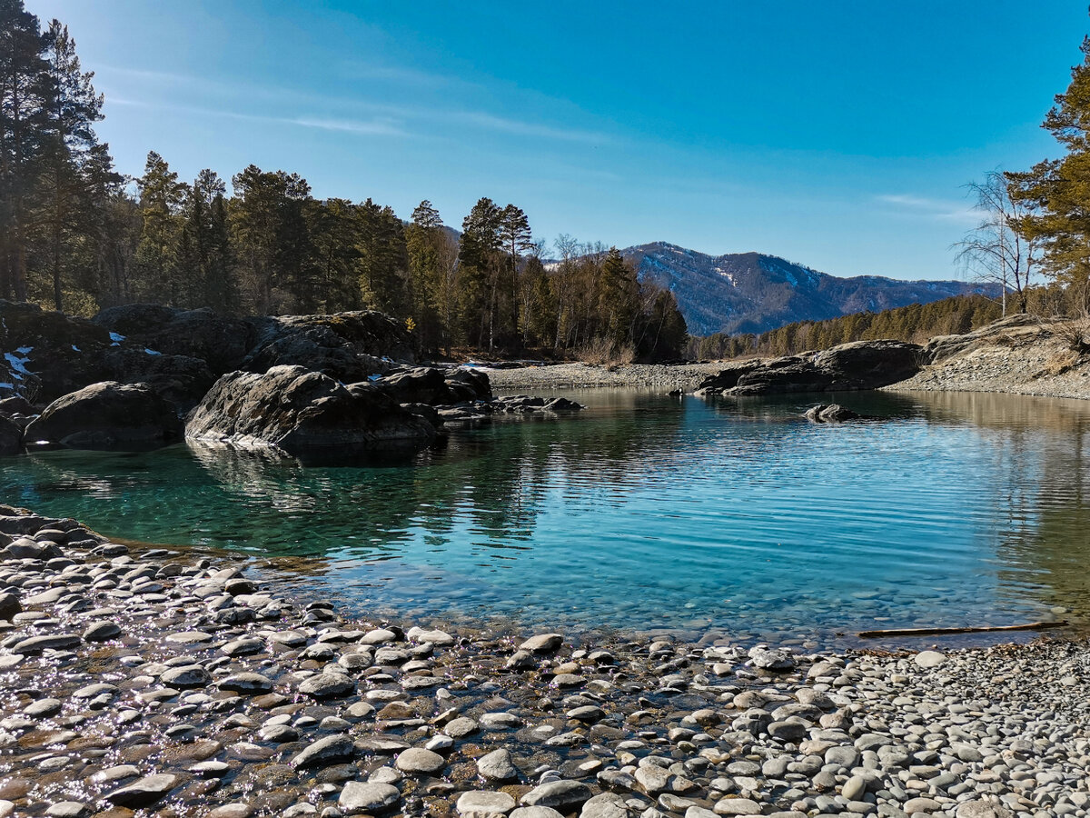 Планируя поездку в Горный Алтай, знакомые нам советовали обязательно посетить Голубые озёра. Зимой к ним можно дойти через реку Катунь, когда ее поверхность еще стянута толстым льдом. В начале апреля лед уже активно тает и это поднимает уровень адреналина. Рядом расположены 3 небольших озера и каждое красиво по своему