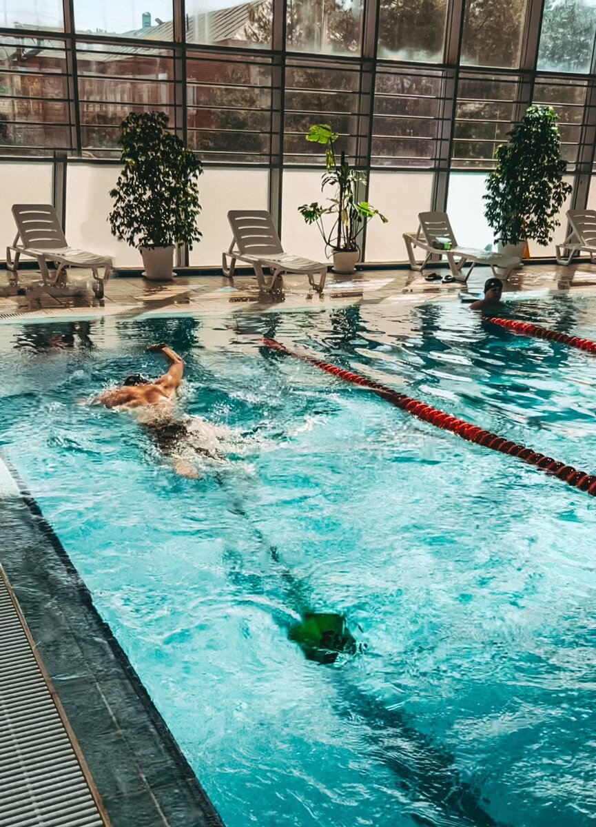 Таааак, пришло время рассказать о новых причиндалах для плавания. Лопатки, ласты, колобашки и даже резина, это все не было особым открытием, все видели. Но вот парашют… парашют это уже совсем что-то новенькое и интересное. Лично для меня это прямая ассоциация с боевой авиацией и автоспортом. Где надо очень быстро, на коротком отрезке затормозить мощную и тяжелую машину… Ну это же прям я 💪😂 В плавании же эту штуку яростно используют для развития выносливости и силы. Небольшой, по площади, кусок плотной ткани упирается в поток, который создает пловец, раздувается и работает как парус. Чем быстрее ты плывешь, тем активнее создается сопротивление. Причем, если плыть равномерно, без рывков, то и напряжение оказывается ровное. Ты постоянно чувствуешь, что на тебе висит тяжеленный грузик, который надо дотащить. Если же техника рваная, то ремень успевает провиснуть и на следующем гребке, когда даешь инерцию, ремень ощутимо-резко натягивается, и гасит твою скорость. По ощущениям, буд