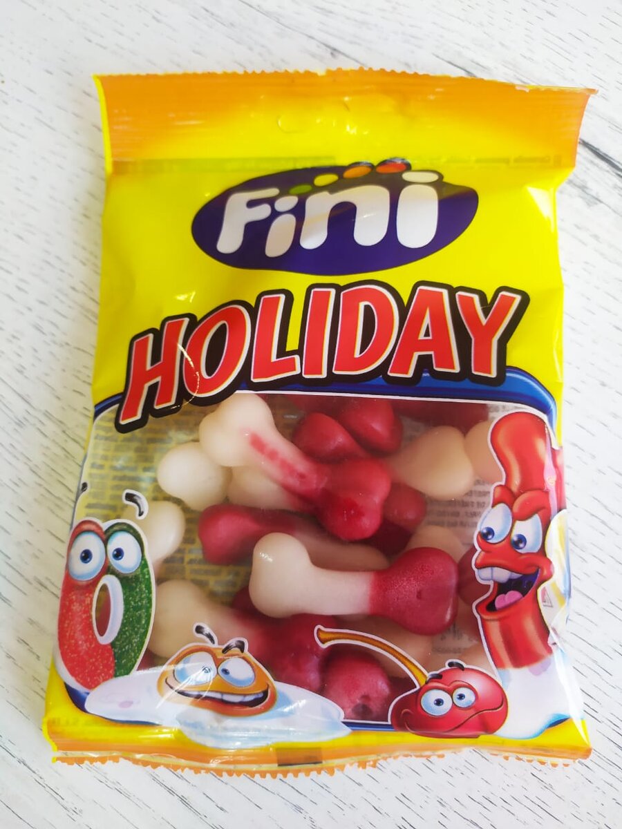 Испанская компания Fini является одним из крупнейших в Европе производителей столь любимого многими мармелада. Еще в 70-х годах прошлого века покупатели получили возможность купить и попробовать на вкус это восхитительное лакомство. Мармелад жевательный, поэтому не скажу, что очень мягкий, действительно надо жевать. По вкусу мне кажется мармелад одинаковый, не смотря на разный цвет. Мармелад не красит слизистую ротовой полости. Очень большой ассортимент разных мармеладок от обыкновенных кусочков до прикольных черепов💀 Но по мимо мармелада компания Fini производит и жевательные резинки. Жевательная резинка с клубничной начинкой в форме яйца коричневого цвета. Из нее выдуваются большие пузыри. Качественная упаковка с интересным, необычным дизайном для людей с чувством юмора. и на жевательных резинках в форме верблюжих яиц компания не остановились т.к эти жвачки стали очень популярными))) и к ним добавились яйца быка и даже леденцы яйца единорога))) Невыносимо кислые леденцы с жвачк