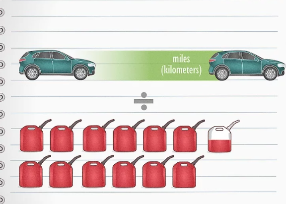 - Если вы используете километры и литры, разделите израсходованное топливо на пройденные километры. Затем умножьте результат на 100, чтобы получить «литров на 100 километров».
