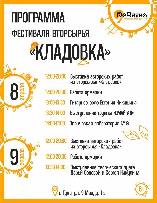 В субботу, 8 апреля, в 12.00, в творческом пространстве «Девятка» (ул. 9 Мая, д. 1-А) откроется фестиваль-выставка авторских работ из вторсырья «Кладовка». Цель мероприятия – привлечь внимание к творческому использованию ненужных вещей и представить бытовой хлам в ином контексте, органично вписав его в художественную среду. Центральной площадкой фестиваля станет выставка арт-объектов. Экспозицию составят работы мастерской «И в а. и. К л ё н.» (Москва), современных художников Елизаветы Наркевич (Москва), Марии Кулешовой (Москва), Кирилла Климова (Тула), Дмитрия Амелина (Тула), Алексея Малышева (Череповец) и многих других. Используя в своих работах отжившие свой век предметы, они наполняют их новым смыслом, превращая в произведения искусства, стильные украшения интерьера. На протяжении фестиваля будет работать ярмарка, на которой посетители смогут приобрести различные авторские изделия и пройдут увлекательные мастер-классы в «Творческой лаборатории № 9». За непередаваемую фестивальную ат