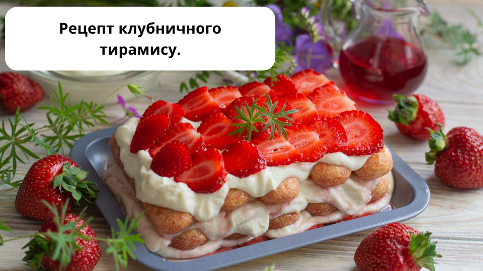 - Перед подачей украсьте тирамису оставшейся клубникой.