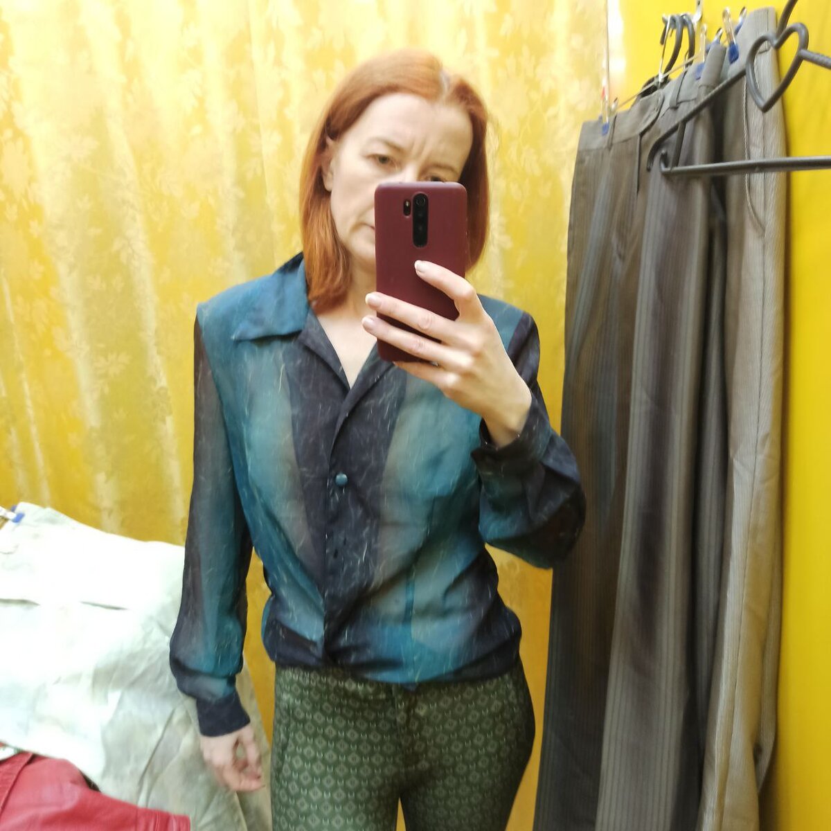 Привет. Ростов-на-Дону на проводе. С вами Анна. А мы продолжаем наши походы по секонд-хендам РнД. Напоминаю, что цены указаны в фото, листаем галерею по каждой вещи. И мои извинения о качестве некоторых фото!!!Это рабочий момент и к сожалению не всегда получается отслеживать их четкость на месте! Начну с узких брюк от Zara и блузки с градиентом сине- зелёных оттенков Теперь костюмы мужские брючные
