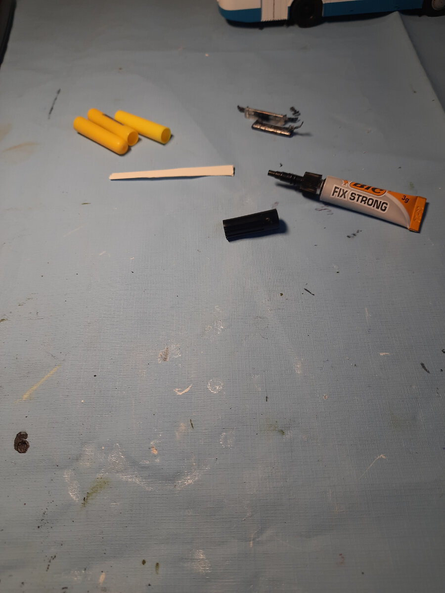Всем привет ребята. С вами я Макс. Сегодня я покажу как сделать гбо на крышу автобуса или грузовика. Нам понадобится: супер клей,ножницы,кусочек пластика,3 колпочка от ручки. Склееваем колпачки. Клеем ножки. Делаем баковинки. Клеем их. Примеряем. Красим и клеем. Вот так получилось. Как вам? Пишите в комментарии. Всем пока.