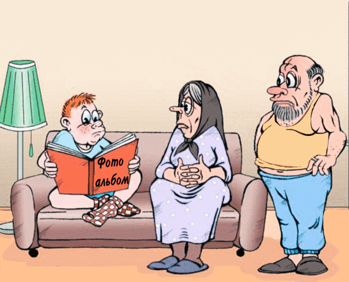 Анекдот: внучок, рассматривая семейный альбом, спросил у деда, за что тот полюбил бабушку. Дед рассказал «романтичную» историю.