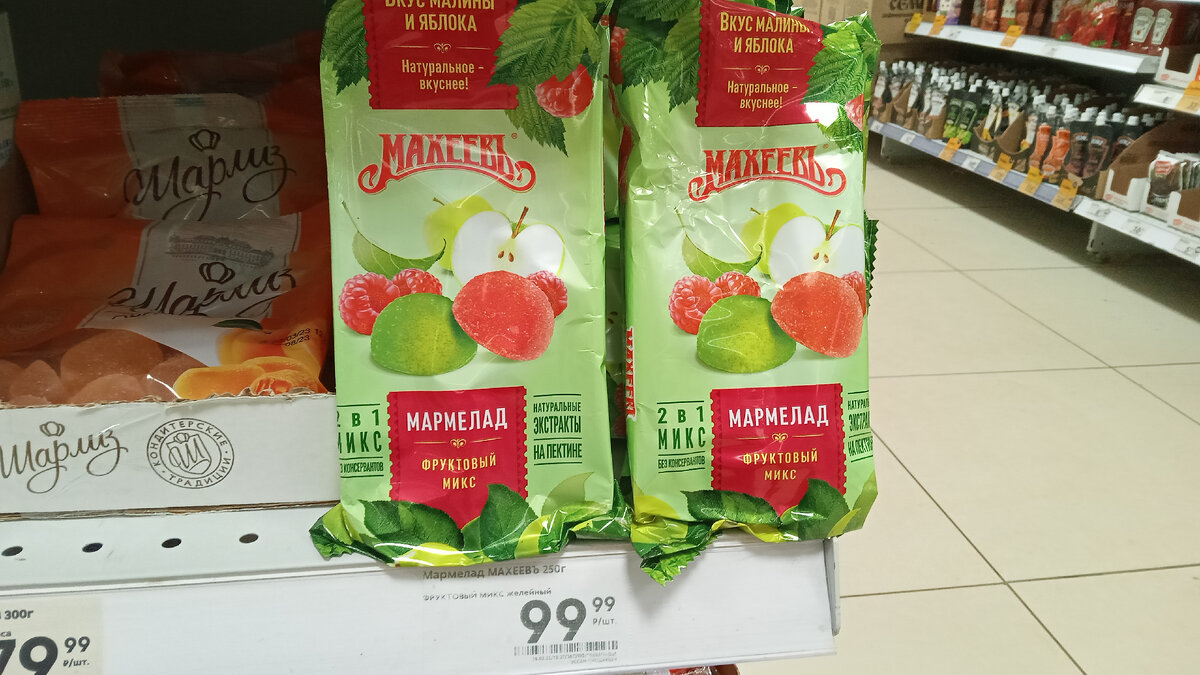 - Иррр.... Иришкаааа.... (это кассир мимо проходящей другой сотруднице) отложи такой мармелад, для меня спрячь, пожалуйста.... две упаковки. Спасибо. Я первая выкладывала эту новиночку. Цена была 99 рублей. Утрамбовала всю выс