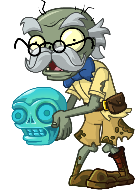 Зомби с бирюзовым черепом (Turquoise Skull Zombie) Описание Зомби с бирюзовым черепом - это зомби, несущий перед собой волшебный череп, поднимая который, как Зомби Ра (Ra Zombie) поднимает свой посох, притягивает к себе солнца. Так же, подойдя близко к растениям, подняв череп может сжигать их до четырёх плиток перед собой. Если ему удастся поглотить солнца, то дальность сжигающего луча увеличится и он не вернет их игроку после смерти, в отличие от Зомби Ра. Первый раз встречается на карте Затерянный город (Lost City) - в 27-й день. Имеет 250 единиц здоровья, при падении здоровья до половины теряет левую руку. Имеет небольшую скорость передвижения. Зомби-охотник за реликвиями (Relic Hunter Zombie) Описание Зомби-охотник за реликвиями - это зомби, похожий на Зомби-головореза (Swashbuckler Zombie), так же раскачивается на веревке и спрыгивает, но в отличия от головореза может спрыгивать на любые плитки с четвертой по шестой от дома и имеет большее здоровья. Первый раз встречается на карт