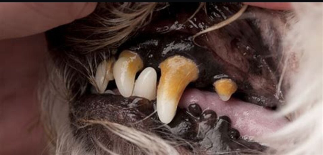 Если Вы видите в ротовой полости у Вашего питомца картину как на этих двух фотографиях сверху - это серьезная проблема в виде зубного камня. Как Вы можете наблюдать, десна над зубом воспалена, красного цвета, ее край как будто задирается к верху, обнажая шейку зуба. В дальнейшем камень сдвинет всю десну вверх, обнажив корень зуба и в этом случае с зубом можно будет попрощаться. Из пород собак данная патология особенно характерна для йоркширских терьеров, пуделей и коккеров. Чистку зубов от зубного камня Вы как владелец животного сделать не в силах. Это должен сделать ветеринарный врач-хирург. Процедура выполняется под седацией, чтобы избежать лишнего стресса у животного. Чистку зубов необходимо делать регулярно, раз в год или по необходимости. Будьте здоровы!