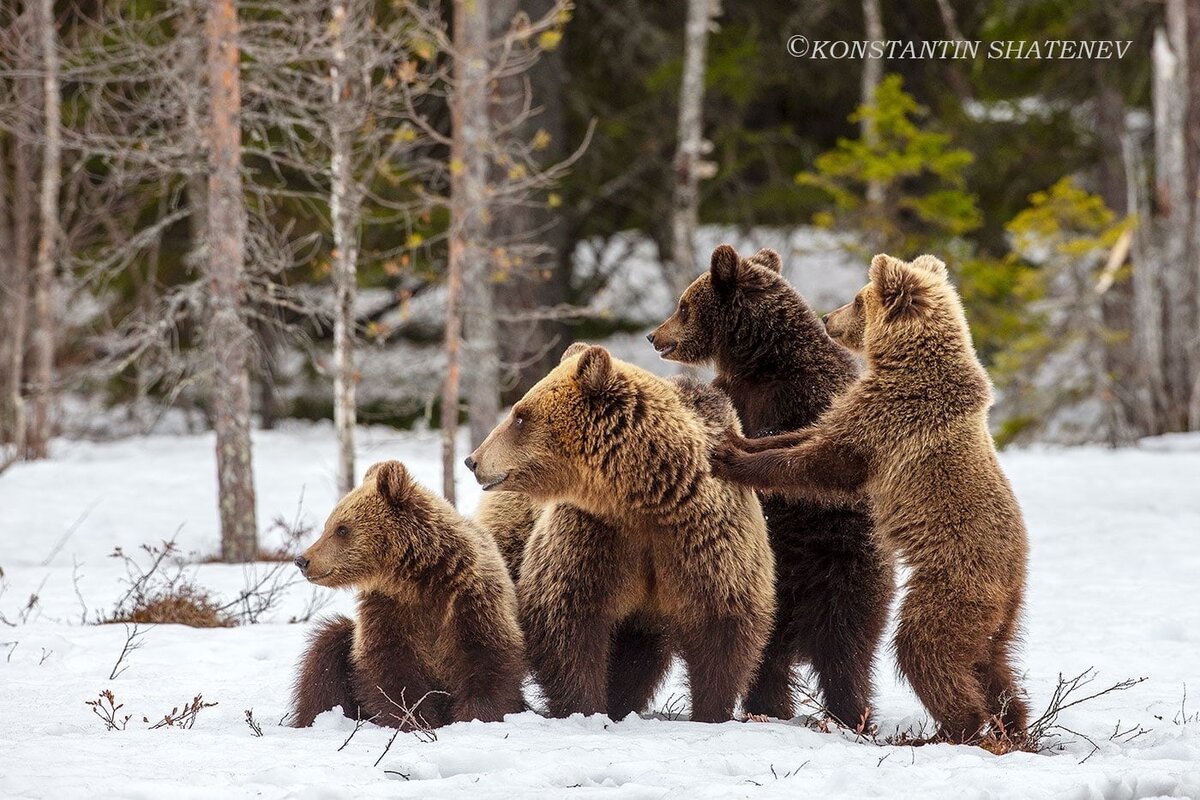 фото: © Константин Шатенев Фотограф Константин Шатенев запечатлел на границе с Финляндией медвежье семейство. На своей странице в соцсети фотограф Константин Шатенев опубликовал снимки медведицы с медвежатами-лончаками. Фото сделаны в апреле, на границе Финляндии и России в Карелии.