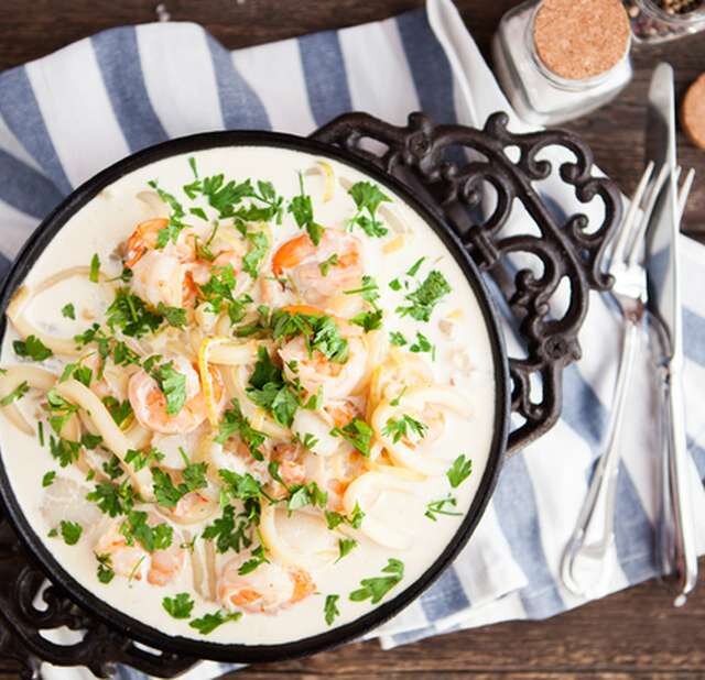 Для пасты воду вскипятила..Алексей готовит морепродукты в сливках..вкусно..как я люблю)