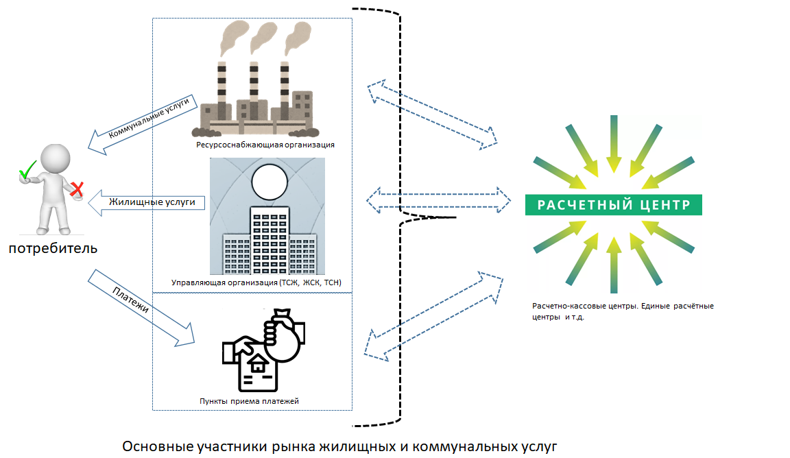 Зачастую, во многих регионах РФ, функции расчета и сбора денежных средств с населения берут на себя специализированные Расчетные центры (РКЦ, ЕРЦ и пр.). Они исполняют роль посредника, на коммерческой основе, представляя Ресурсоснабжающим и Управляющим организациям свои услуги.