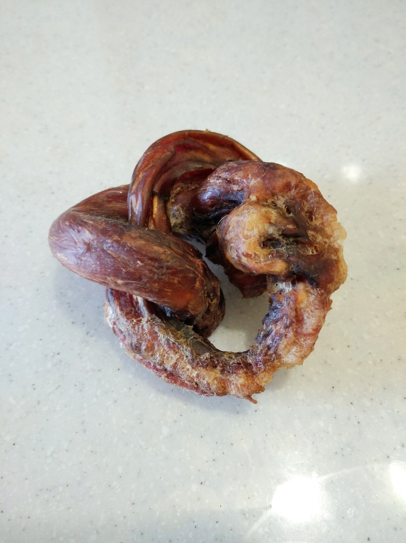 Интересный вопрос - не правда ли? Кстати, еще один не менее интересный вопрос - а что такое этот самый "бычий корень?" Поясняю - бычий корень-это сушеное лакомство для собак. По сути это пенис быка в засушенном виде, который руки наших умелиц сплели в замысловатый узел. Приобрела я сей предмет давно, для поощрения Николь в занятиях ноузворком. Уж очень она просила, а они так заманчиво пахли на весь зал. Свеженькие... Я тогда ей купила эту штуковину и она как то так быстро ее схомячила. За пару часов всего. Я подивилась, и забыла. А вот недавно, разбирая шкаф, убирая зимние вещи, я неожиданно для себя выявила источник зловония в нашем доме. Заботливо спрятанный пахучий "узелок" лежал, на черный день, видимо. Ну посмеялись мы, лакомство опять Жуже отдали. Очень уж она беспокоилась, что мы схрон нашли. А вчера вечером ложусь я в постель, руку-под подушку и сердце в пятки. Нащупала моя конечность то, чего там быть не должно было. И это вообще непонятно что было. Только необычайно трениров