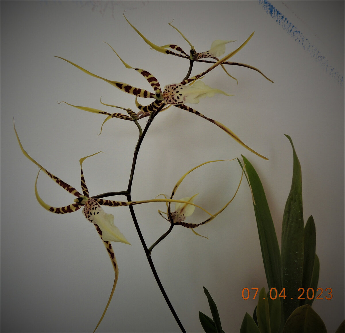 Скорее, брассада. Растение старое, несколько раз поделенное собственно, куча бесформенных лепёшек с неопрятными листьями и торчащими в разные стороны корнями. Цветёт безотказно, один-два раза в год, паукообразными цветками со сладким кондитерским ароматом.