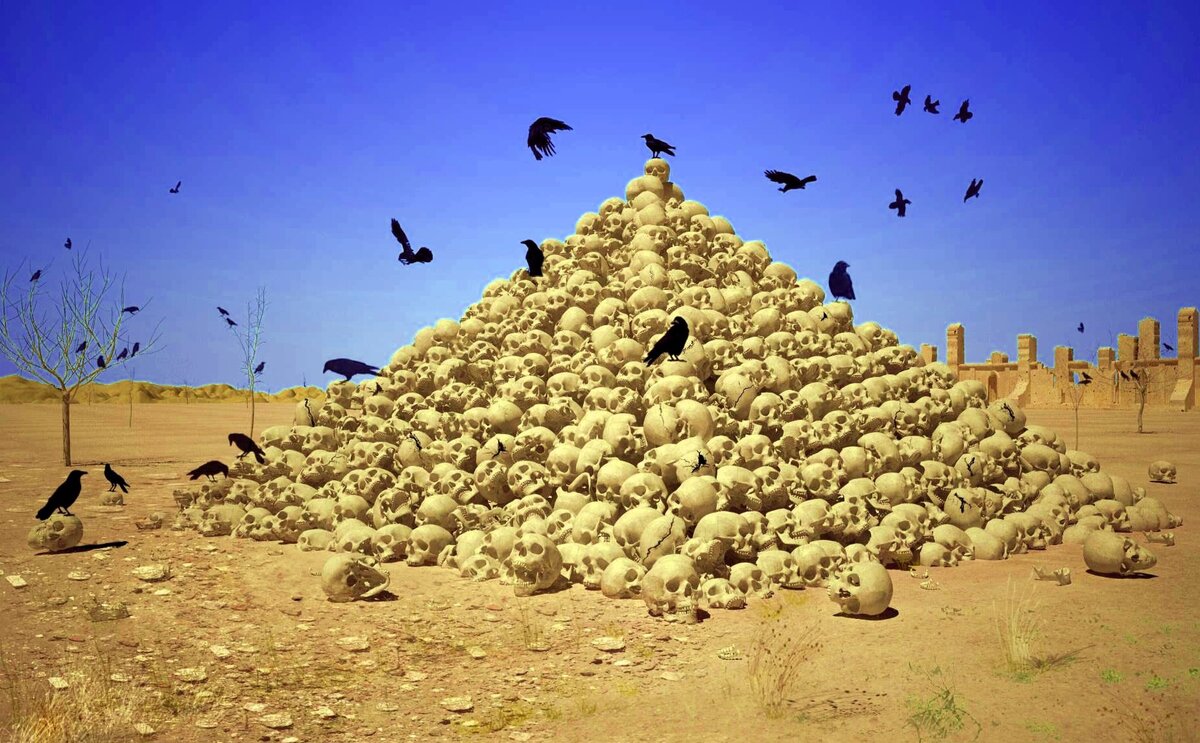 Картина, созданная Василием Верещагиным в 1871 году и находящаяся в Третьяковской галерее в Москве, изображает сцену, которая изначально должна была называться «Торжество Тамерлана». Она описывает исторический эпизод, произошедший в XIV веке, когда тюрко-монгольский военачальник Тамерлан отдавал приказ о создании пирамид из голов побежденных народов. Позже, в 1860-х годах, такие пирамиды строились по приказу среднеазиатских ханов в Туркестане во время войны против Англии. На тот момент Туркестан был частью Российской империи, а Верещагин, который был прапорщиком и состоял при туркестанском генерал-губернаторе, мог наблюдать за этим изображая происходящее в своих рисунках. Однако, после завершения работы над картиной, художник осознал, что она может быть воспринята как сильное антивоенное высказывание, которое выходит за рамки исторической эпохи. Поэтому Верещагин решил изменить название картины .