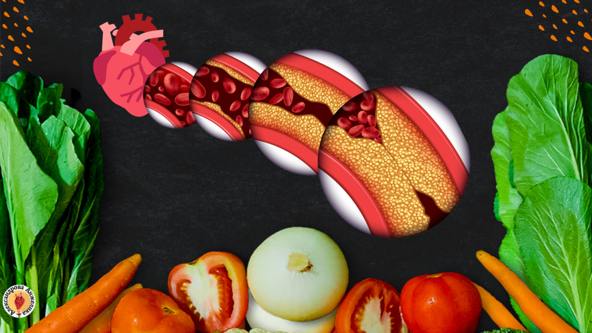 Слово атеросклероз происходит от двух греческих слов: athero, что означает «расстройство» или «каша», и «sclerosis», что означает «трудный» или « твердый». Это заболевание также известно, как «затвердение артерий». Утолщая стенки артерий, бляшки сужают проход, по которому течет кровь, нарушается эластичность стенок сосудов. Атеросклероз приводит к повышению кровяного давления и развития ишемической болезни сердца, при этом в крови повышается уровень холестерина. 1. Рафинированный сахар и белая мука увеличивают плотность уровня холестерина, приводя к атеросклерозу сердца. 2. Часто употребление белка животного происхождения связано с показателем смертности от сердечно - сосудистых заболеваний. 3. Фруктовые, бобовые и овощные волокна (даже лучше, чем пшеничные отруби) уменьшают содержание жиров в крови. 4. Лук уменьшает атеросклеротические изменения в сосудах 5. Арахисовое и кокосовое масла вызывают атеросклероз. Эти масла содержат 25% сахара, несмотря на то, что они являются маслами ра