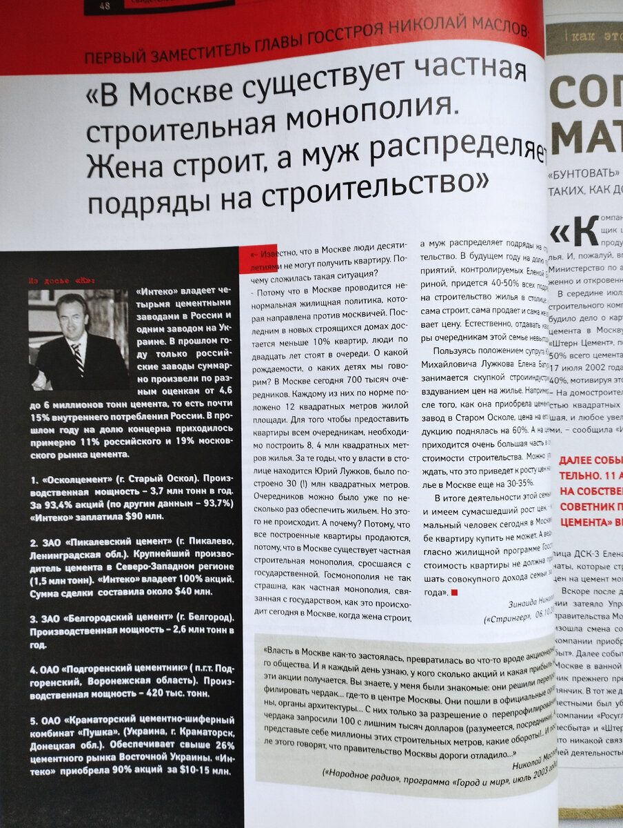 Эту статью начинаем с мнения заместителя министра строительства России Николая Маслова, который и сам не чист на руку был и Мэра Москвы за это же критиковал вопреки поговорке что "ворон ворону глаз не клюет"...