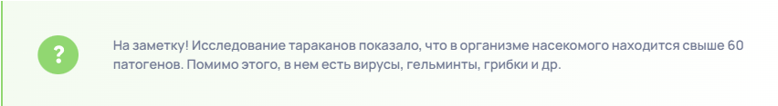 На заметку! Исследование тараканов показало, что в организме насекомого находится свыше 60 патогенов. Помимо этого, в нем есть вирусы, гельминты, грибки и др.