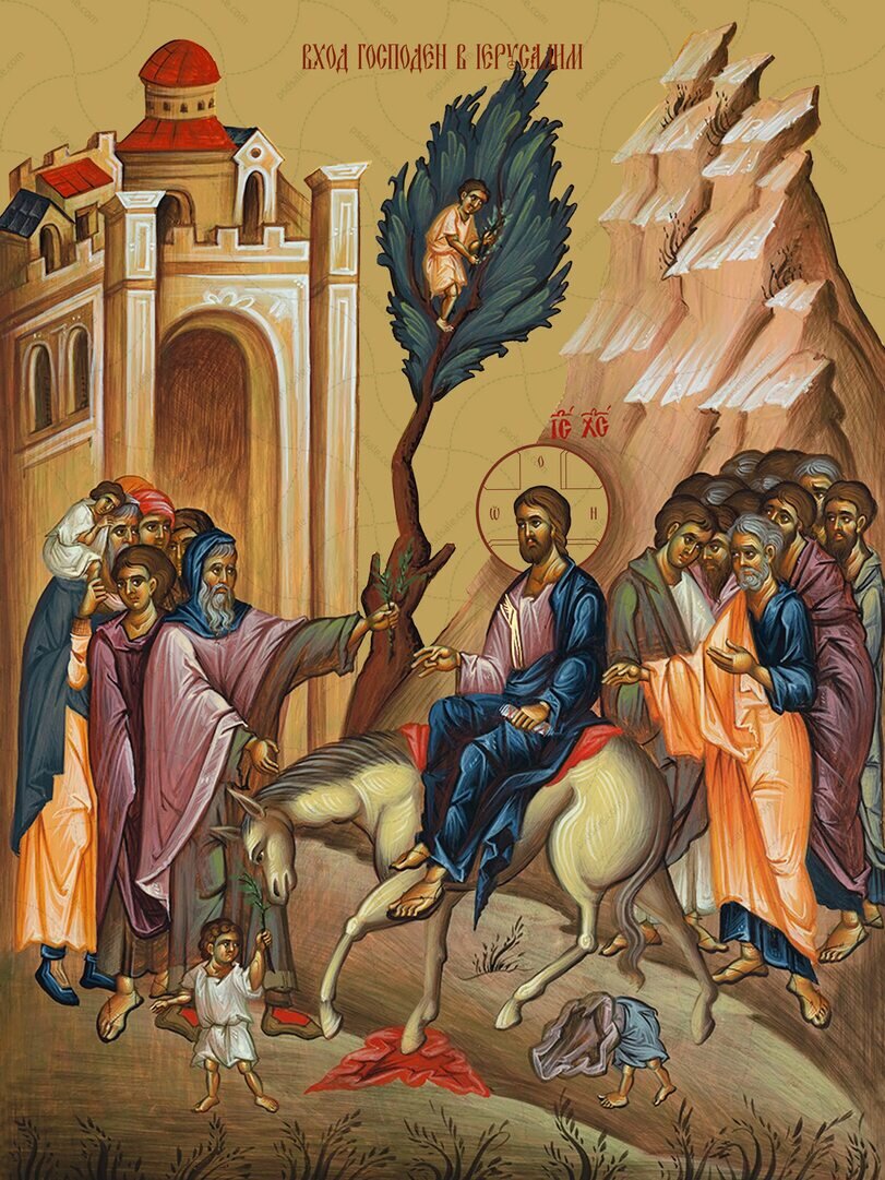 Великий пост. На трапезе разрешается рыба. Неделя 6-я, Ваий, Вход Господень в Иерусалим. Вербное воскресенье. Прп. Иоанна Лествичника (649). Свт. Софрония, еп. Иркутского (1771). Прор. Иоада (Х в. до Р.Х.) Апп. Сосфена, Аполлоса, Кифы, Кесаря и Епафродита (I). Св. Еввулы, матери вмч. Пантелеимона (ок. 303). Прп. Иоанна безмолвника (VI). Прп. Зосимы, еп. Сиракузского (ок. 662). Вход Господень в Иерусалим В воскресенье перед Страстной седмицей Церковь вспоминает торжественный вход Господа Иисуса Христа в Иерусалим, когда Он перед всем народом явил себя Царем – Спасителем мира. Накануне в Вифании Господь воскресил праведного Лазаря, умершего за четыре дня до Его прихода. Помня об этом событии, множество народа, собравшегося в Иерусалим на праздник еврейской Пасхи, вышло навстречу Спасителю. Он, как царь после одержанной победы, въезжал в столицу верхом на осле в сопровождении свиты из апостолов. Люди по обычаю постилали свои одежды на дорогу, срезали пальмовые ветви и держали их в рук