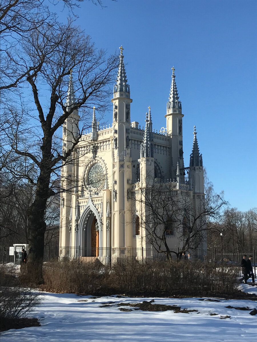 Стрельчатые окна, арки, ажурные шпили. Готический стиль смотрится очень красиво и романтично. Ведь это архитектура эпохи рыцарей. Николай l, несмотря на свою военную жизнь, в душе был романтик. Наверное, поэтому, в молодости он подарил своей супруге имение с постройками в готическом стиле и назвал в её честь- Александрией. И мы идём туда!