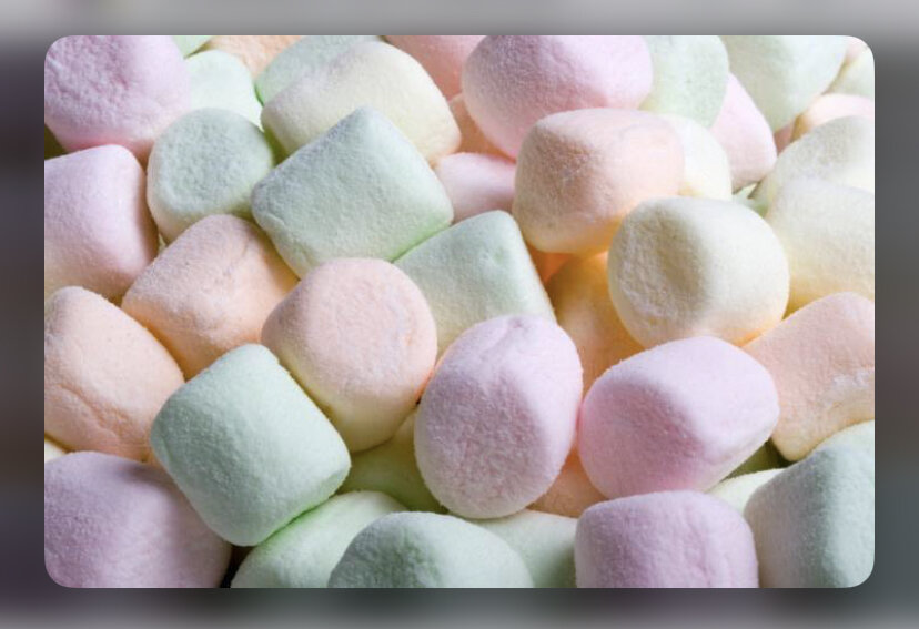 Маршмеллоу - это лакомство, которое напоминает пастилу, состоящее из сахара, кукурузного сиропа, желатина, чья консистенция напоминает губку, а текстура очень воздушная.