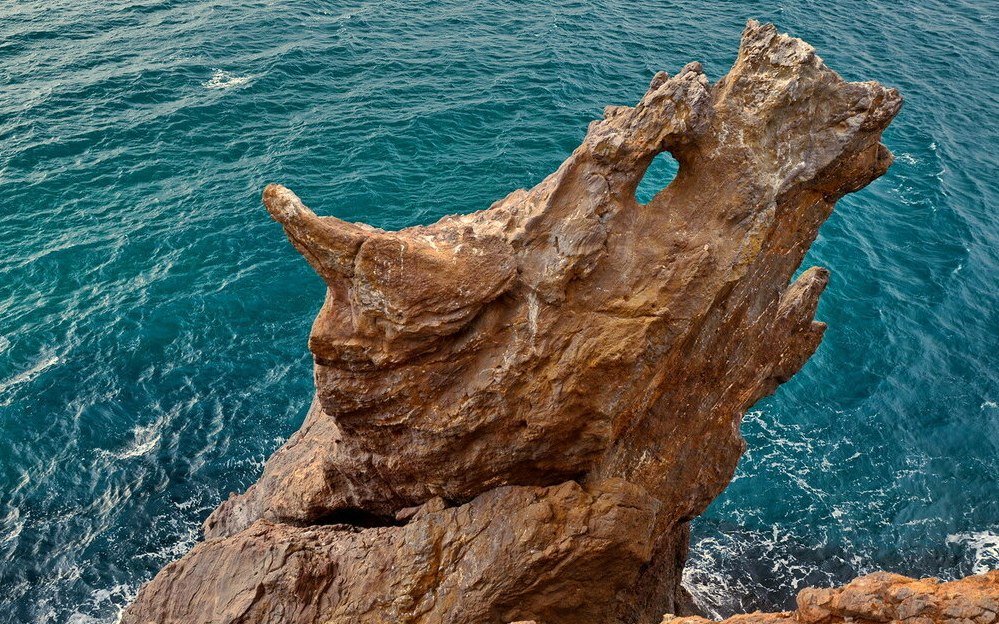 Давно не было Крыма! Жутковатую голову чудовища с незакрывающимся глазом выточила сама природа. Из моря выглядывает только одна голова Дракона, а его туловище прячется глубоко под водой. Вид на этот уникальный природный памятник открывается с самого края мыса Виноградный на Фиоленте. 44.5170 33.4692
