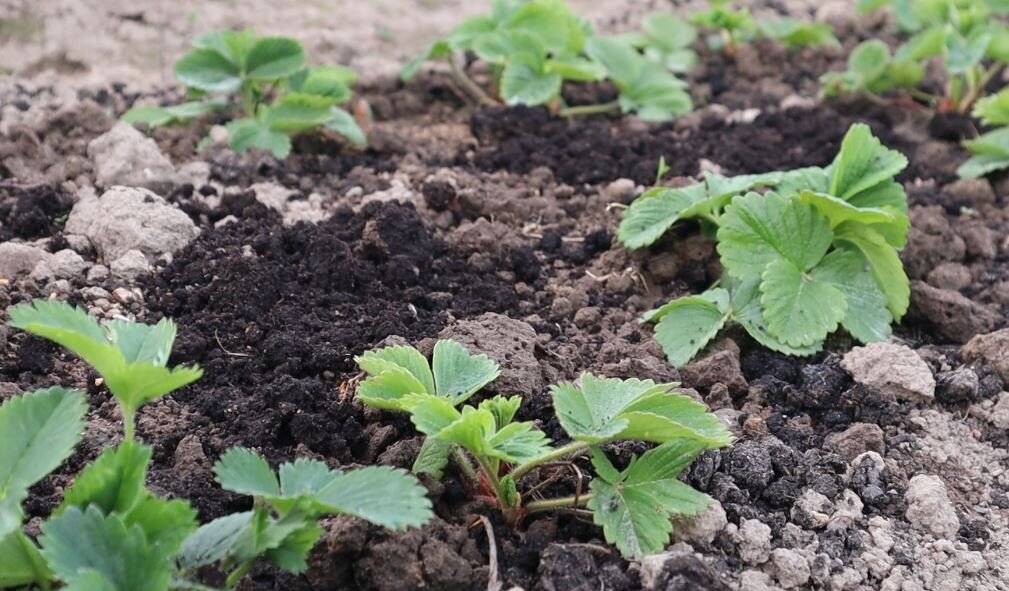 Когда только приобрела дачный участок, долго удивлялась почему нет хорошего урожая клубники, конечно дело оказалось в неправильной агротехнике. Сегодня кратко расскажу, несколько секретов весной, для получения максимального количества, крупной, спелой ягоды. Текст легкий, простой, рассчитан на новичков, но тем не менее, с таким уходом, можно получить максимальный урожай. В первую очередь удалите грядки с клубникой, которой больше 5 лет, эти кустики свое отслужили, с них шикарного урожая не получите. А молодые усики, которые успели укорениться осенью, рассадите на новое место, сделав нужную вам грядочку. Часто не сажайте, минимальное расстояние между кустами 25 см. Очень важный фактор хорошего урожая - разреженная посадка. На таких клубничных грядках, увеличивается продуктивность, потому что болезни не перекидываются с куста на куст, да и питания корням достается больше. Я сажаю так: расстояние, не менее 35 см в ряду, и 40 между. При пересадке в каждую лунку подсыпаю перегной и немного