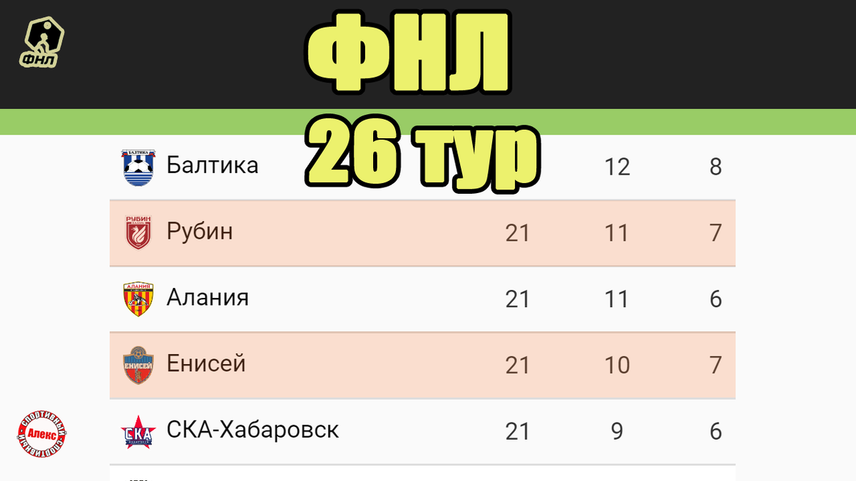 Вашему вниманию результаты, таблица, расписание ФНЛ. В 26 туре было 3 красные карточки. Реализовано 2 пенальти. Забито 14 голов. Самый крупный результат зафиксирован в матче Шинника и Волги (2-2). Три встречи завершилось без голов. «Рубин» свой 4-й матч подряд завершил вничью. Беспроигрышная серия команды составляет 22 игры. Третья «Алания» одержала первую победу в 2023 году и прервала отрезок из пяти матчей без выигрышей. Набирает обороты «Кубань». В пяти последних турах - 3 победы и 2 ничьи. Полуфиналист Кубка России «Акрон» не проигрывает с середины ноября во всех турнирах (12 матчей). Расписание 27 тура. Лучшие бомбардиры и ассистенты: Таблица. Ставьте лайк. Подписывайтесь. Как вы думаете, кто займёт третье место?