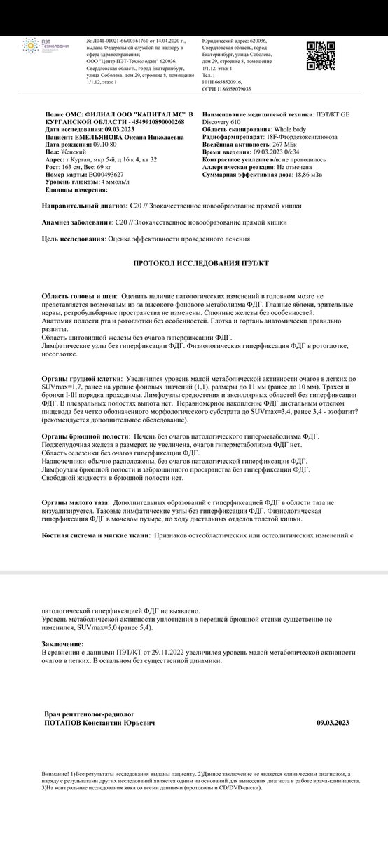 Привет, народ. Наконец-то нашла время и силы написать. Начало моей истории здесь: Моя жизнь, как постоянное сражение В январе у меня немного начала болеть спина слева, где сейчас находится главный очаг с метастазами, и стало больно глубоко дышать. Со временем боль стала распространяться всё шире и захватывать всё большие участки. Дошло до того, что я не могла ни лежать, ни сидеть и дышать больно даже поверхностно. Потом эта боль распространилась даже на тазобедренные суставы, так что ходить тоже стало больно. Я стала подозревать, что появились метастазы в костях, но при этом я стала набирать вес, что при прогрессировании несвойственно, так как человек при раке наоборот худеет, поэтому рассказала обо всём своему врачу. Она тоже очень расстроилась, это было заметно по её лицу, и сказала, что надо срочно опять ехать на ПЭТ-КТ в Екатеринбург. 9 марта я прошла обследование и, как никогда до этого, боялась результата. К тому же мне, видимо, ввели большое количество радиактивного препарата, ч