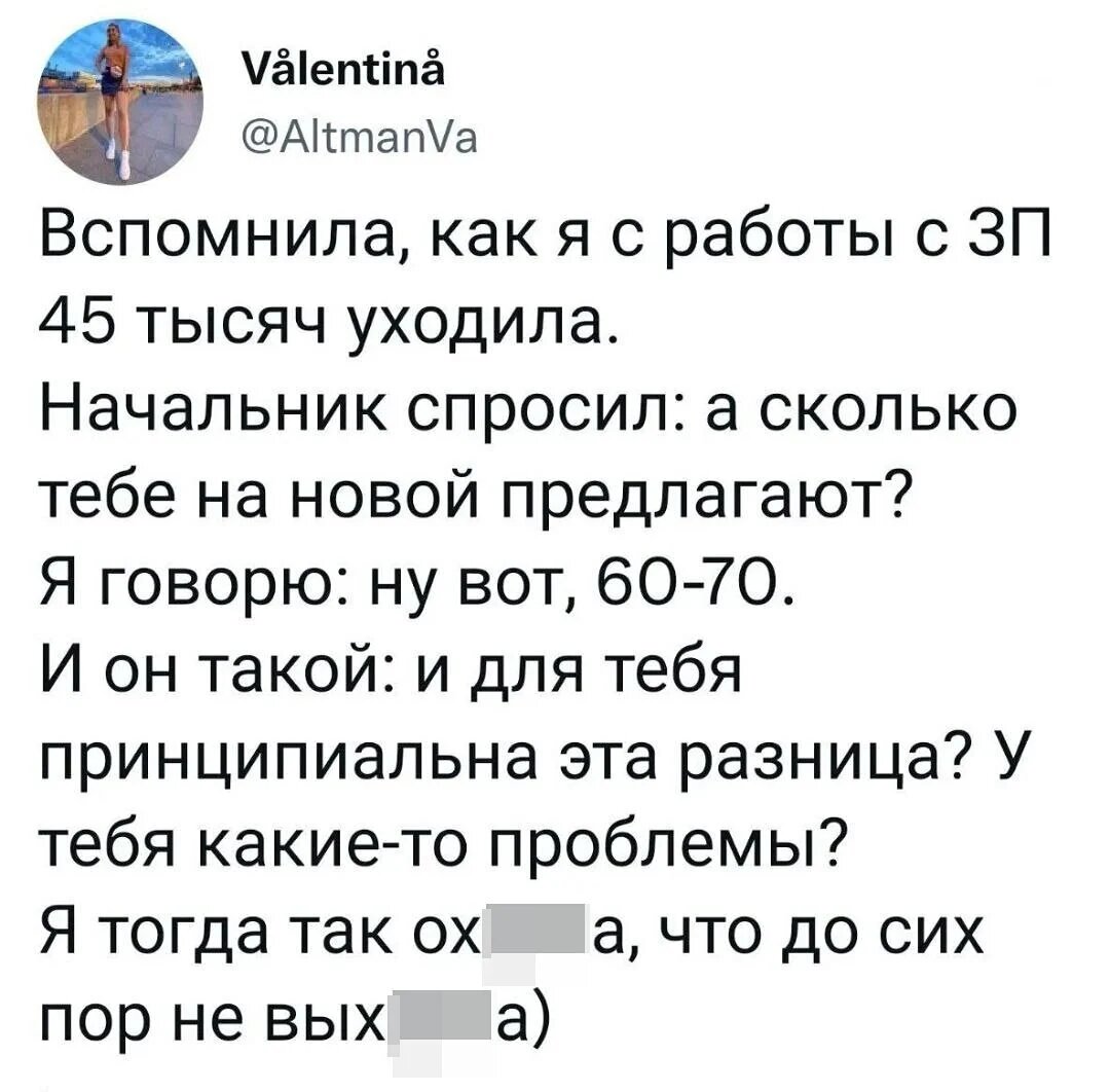 Однажды я натолкнулся на вакансию, в которой искали «неуверенного в себе программиста». Вроде и смешно, а вроде я и сам такой 😑 Приведу несколько примеров из моего опыта, как я мог недозаработать, если бы пошел на поводу у своих страхов. Почему некомфортно просить повышение или напоминать о договоренностях? Мы боимся получить отказ и негативный фитбек о своей работе (читай «о себе»). Как с этим бороться? Во-первых, посмотреть на цифры, которые недозарабатываем на страхе. Они отрезвляют. Во-вторых, проиграть самый негативный сценарий и осознать, что в нем нет ничего фатального. В худшем случае тебе откажут. Возможно, добавят, что надо подтянуть навык (хотя об этом тебе скорее всего уже сказали бы). В лучшем — тебе поднимут зарплату. Есть еще третий вариант. Бонусный. Если ты работаешь с манипулятором, после общения с которым ни зарплата не поднимется, ни решение не появится, еще и чувствовать себя будешь как мудак. В такой ситуации надо сразу уходить, иначе завязнешь в болоте неуверен