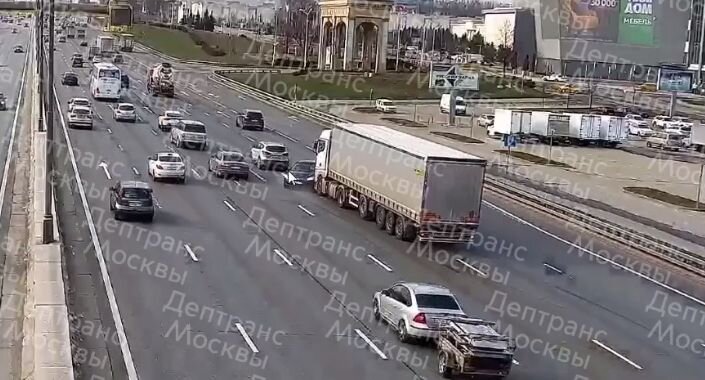Три автомобиля столкнулись на внешней стороне 67-го километра МКАД, после развязки с Волоколамским шоссе. Движение в районе аварии оказалось затруднено, сообщила пресс-служба столичного департамента транспорта. Момент ДТП попал на видео. Судя по кадрам, большегруз наехал на двигавшуюся впереди легковушку и протащил ее несколько метров по проезжей части. После этого затормозила и фура, и ехавшие позади машины. Уточняется, что на месте аварии уже работают сотрудники оперативных служб. Обстоятельства происшествия и информация о пострадавших пока выясняются.