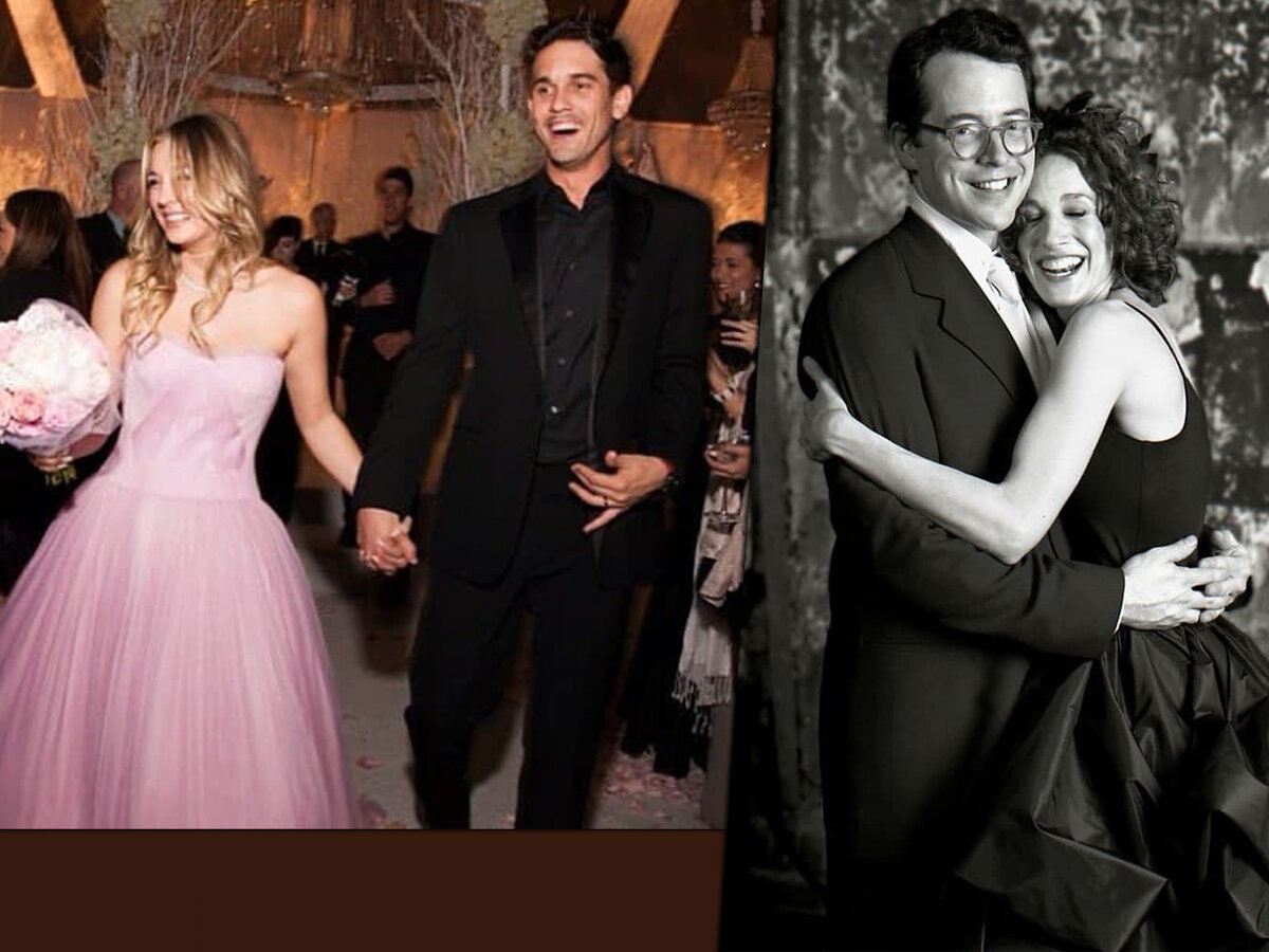«Я остановилась на черном цвете просто потому, что мне было очень неловко выбирать свадебное платье. Я пошла в магазин, который любила и знала, и купила то, что у них было», — вспоминала Паркер в 2009 году. Подобный поступок можно объяснить еще и тем, что Сара, как и Мэтью, старалась избежать лишнего внимания. Свадьба влюбленных тогда стала сюрпризом для всех 100 приглашенных гостей, которые были уверены, что идут на вечеринку.